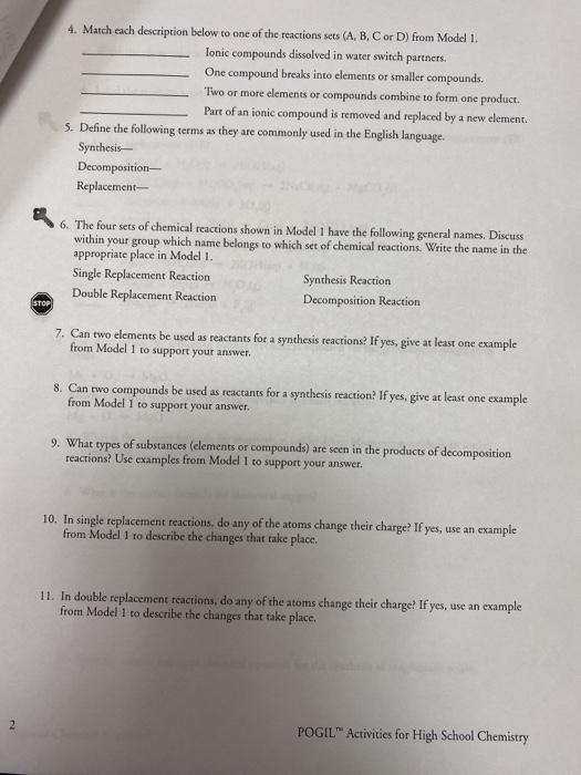 Write chemical formulas under the names of the substances in the word equation. Pogil activities for high livingston public schools / lps homepage oxidation reduction reactions. Pogil activities for highschool chemistry types of naming acids chemistry pogil answer key. One each side of the equal side, also known as yields, the number and type of atoms are exactly the same. Chem pogil types of chemical reactions.