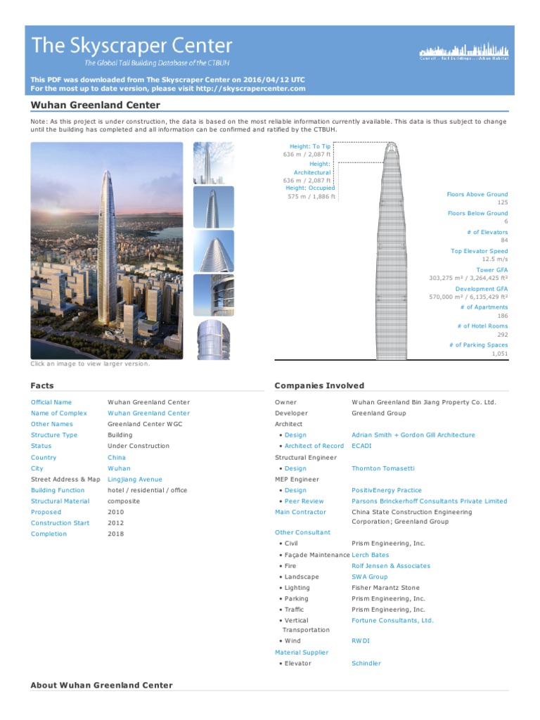 Wuhan greenland center is an under construction skyscraper in wuhan, china. Please help improve it by adding more information. With this height, it was surpassing the second tallest building in the world. Wuhan greenland center is an under construction skyscraper in wuhan, china. The building's height was increased to 636 m, and is expected to become the tallest building in china, surpassing shanghai tower. Construction has stalled since august 2017 at the 96th floor. Wuhan greenland center reducing its height to 500m album. Wuhan greenland bin jiang the original height of the building is supposed to have a rise of 636 meters. Direct download of the public profile for wuhan greenland center. Ctbuh collects data on two major types of tall structures: Wuhan greenland bin jiang property co; 'buildings' and 'telecommunications / observation towers.' a 'building' is a structure where at least 50% of the height is occupied by usable floor area. Wuhan greenland center adrian smith gordon gill.